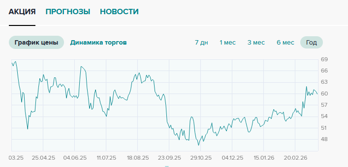 Цена акций «ДВМП» на сегодня 60,57 ₽