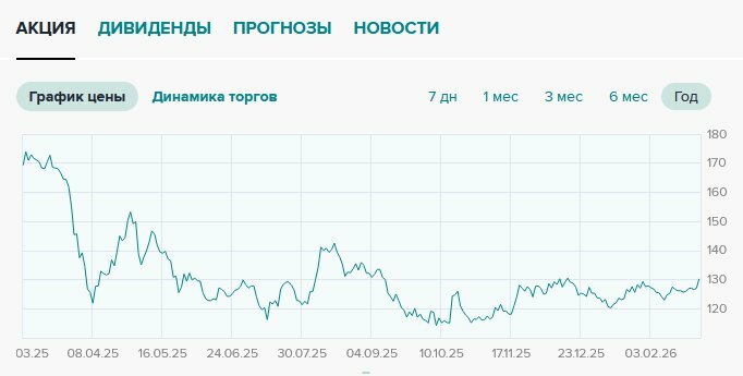 130,11 ₽ за одну обыкновенную акцию (данные Московской биржи на 02.03.2026)